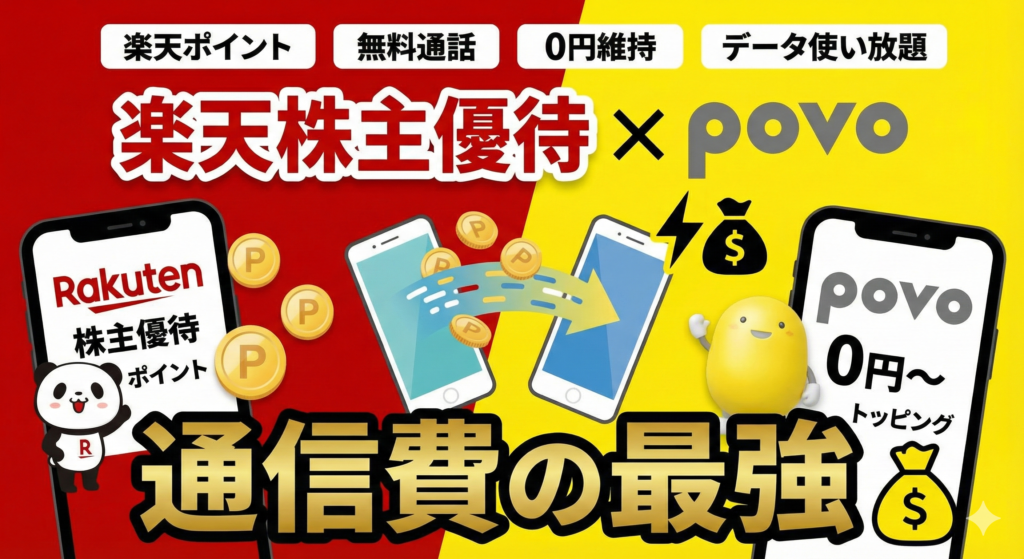 【楽天の株主は全員やるべき】スマホ代を年3万円浮かせて投資に回す!「povo2.0×楽天優待」のデュアルSIM活用術